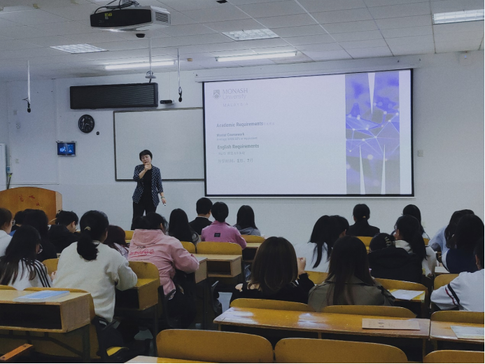 (图为老师介绍蒙纳士大学入学相关事宜)